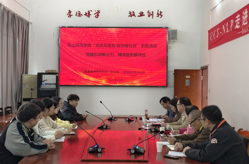 本网讯(文/杨波 图/李俊)为深化“党员双报到”机制,搭建后勤保障与学生沟通的桥梁,精准解决学生学习生活中的急难愁盼问题,2025年10月31日上午10点,乐山师范学院后勤保障服务部党总支第一党支部联合武伽山二片区党委,在社区党委会议室成功举办“党员双报到·服务暖社区”主题活动。后勤保障服务部副部长陈丽娟、第一党支部书记杨波、后保部部分中心主任及党员代表,武伽山二片区党委书记李俊、部分片区学生党员代表共同参与此次活动。