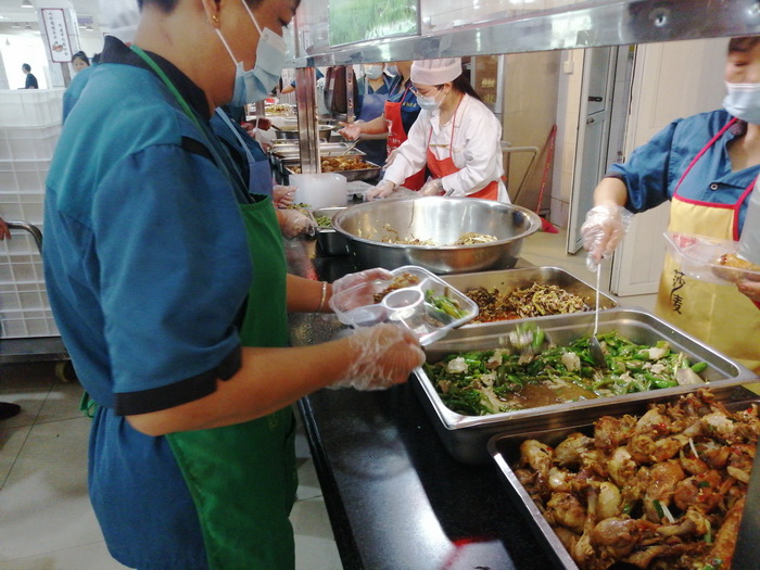 为方便迎新工作人员就餐,特采取盒饭配送服务。饮食服务中心提前筹划,对盒饭标准、食品安全、防疫安全作出详细安排部署。供餐过程中,饮食服务中心管理人员与迎新部门盒饭联络人实时沟通,保证按时按质将盒饭配送至指定地点,对他们提出的临时性需求也是尽最大努力满足。