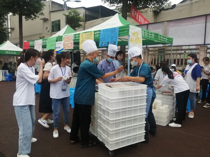 本网讯(文、图/龚金华)8月31日、9月1日,2021级新生开学报道,饮食服务中心承担迎新工作人员的餐饮服务工作并圆满完成。