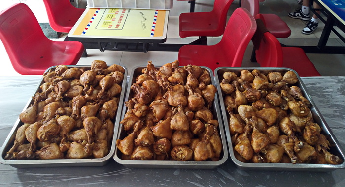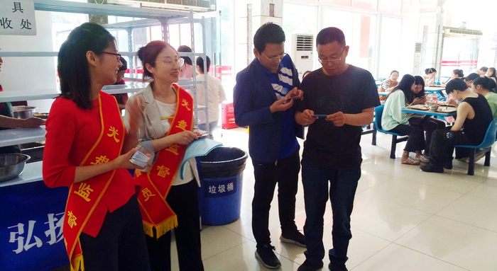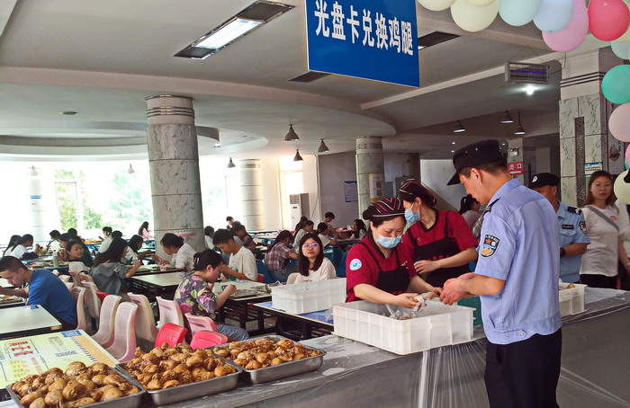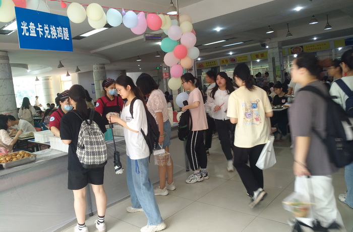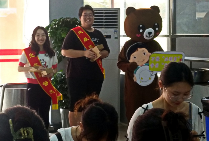 本次活动共设四项内容:一是光盘行为倡导。4月18日-20日,饮食服务中心在校园网主页发布、在食堂门口张贴、在就餐大厅向全校师生发放“关于开展节粮活动的温馨提示”、“厉行节约、制止餐饮浪费的倡议书”等节约粮食的宣传资料,广泛宣传中华民族勤俭节约的传统美德和节粮知识;二是您光盘,我买单。于4月18、19日在学生食堂就餐大厅安排光盘督导员,对真正做到光盘行为的师生发放光盘卡,一位光盘就餐者发放一张光盘卡,共发放光盘卡3600张,同时对未光盘的师生进行劝导。4月19日下午,饮食服务中心牵头组织学生代表根据光盘卡上的编号随机抽取产生“光盘幸运者”,一等奖10名,奖励特仑苏纯牛奶2件,食堂两荤两素免费餐券20张;二等奖20名,奖励特仑苏纯牛奶1件,食堂两荤两素免费餐券10张;三等奖100名,奖励特仑苏纯牛奶1件。其他光盘卡持有者,持一张光盘卡可免费兑换一个鸡腿。三是在百景苑食堂门口现场为师生准备了高等教育办学45周年纪念日超大生日蛋糕品尝。四是在“光盘幸运者”学生中选拔食品安全督导员,负责学生就餐意见的收集、就餐行为的引导,发挥学生与食堂之间的纽带作用。