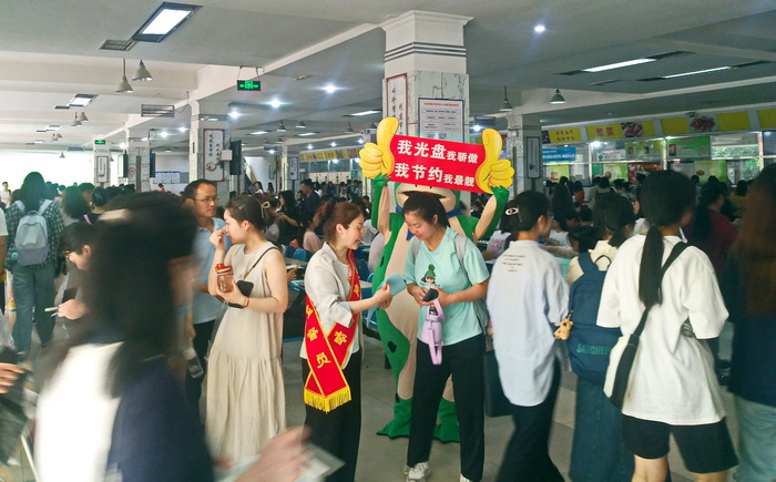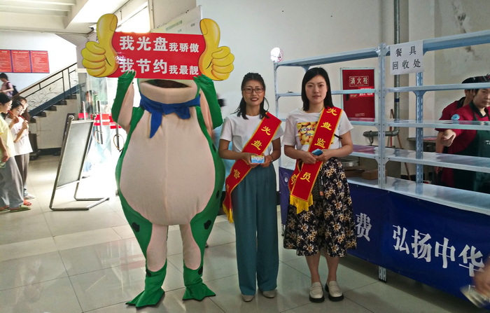 本网讯(文/饮食中心、图/代成刚)在我校高等教育办学45周年之际,为让全校师生员工度过一个简约、快乐、有意义的纪念日,共同创建绿色环保、勤俭节约、文明和谐的良好校园氛围,饮食服务中心于4月18日至20日,在学生食堂开展了题为“厉行节约 光盘有我 弘扬美德 传承在我”节粮爱粮专题活动。